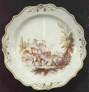 Petit feu polychrome. Fabrique Veuve Perrin à Marseille. Diamètre 37 cm. Les formes sont variées. Les pièces de forme sont parfois somptueuses : vases à anses, pots couverts, pots de pharmacie, surtout de table, plaques en demi ronde-bosse, statuettes, porte-huiliers, glacières, bouquetières, et surtout de magnifiques soupières et terrines. Le décor peint subit des influences variées. Il évolue en accompagnant le changement de l’Histoire du Grand Siècle à la Révolution