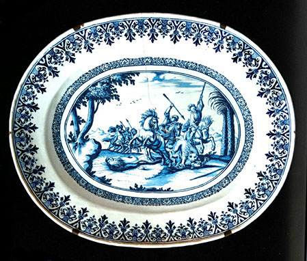 On y voit apparaître les grands plats décorés de sujet de chasse (d’après le célèbre graveur italien Tempesta).